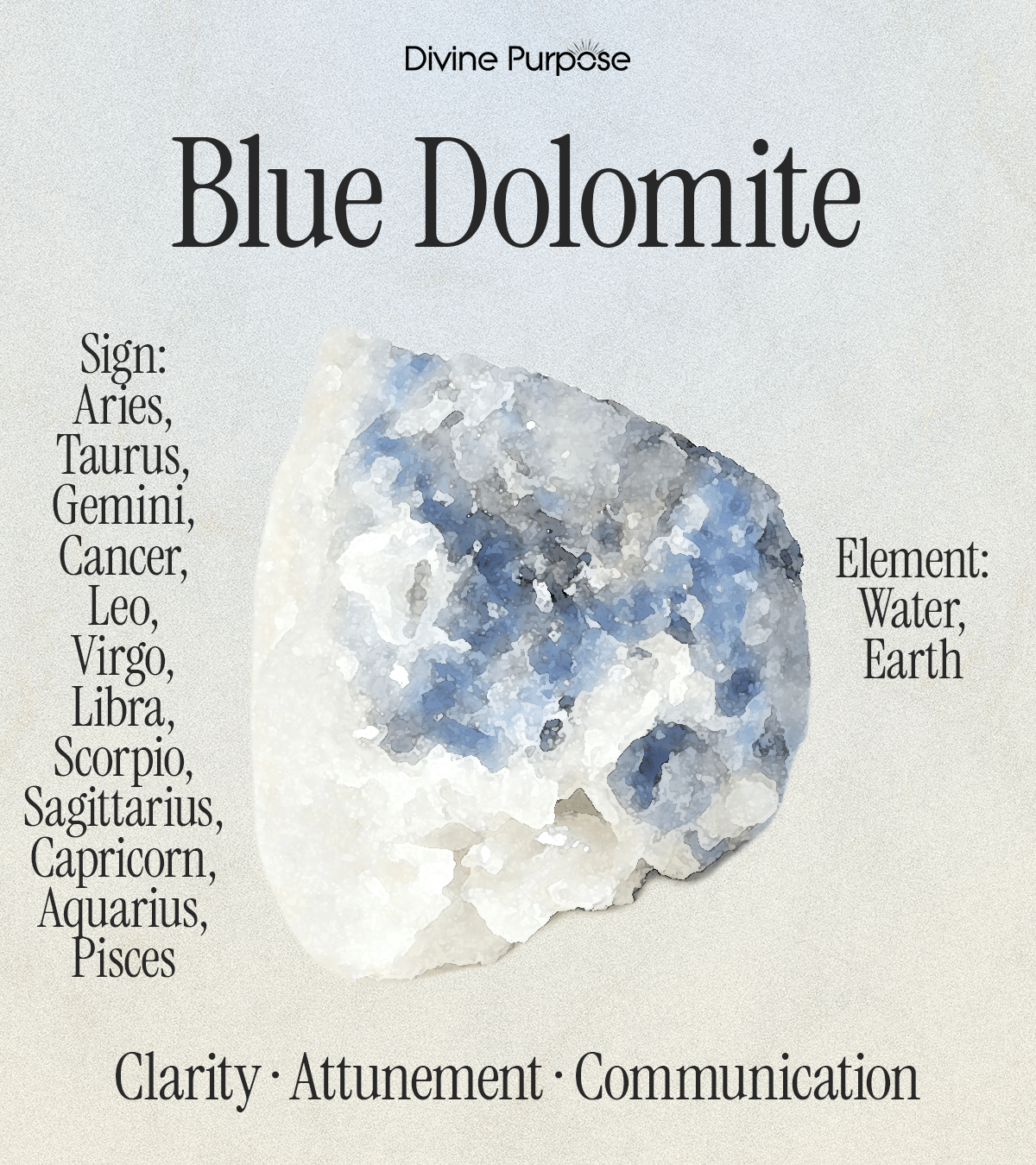 This stone carries a calm, nurturing energy that naturally supports emotional balance and mental clarity. It is particularly attuned to the throat chakra, promoting clear communication and facilitating a smooth flow of ideas and feelings, but its energy naturally works through the entire chakra column, helping to release blockages and restore overall alignment. Whether you’re seeking to enhance personal reflection, strengthen interpersonal connections, or simply create a moment of inner peace, Blue Dolomite is an ideal companion.