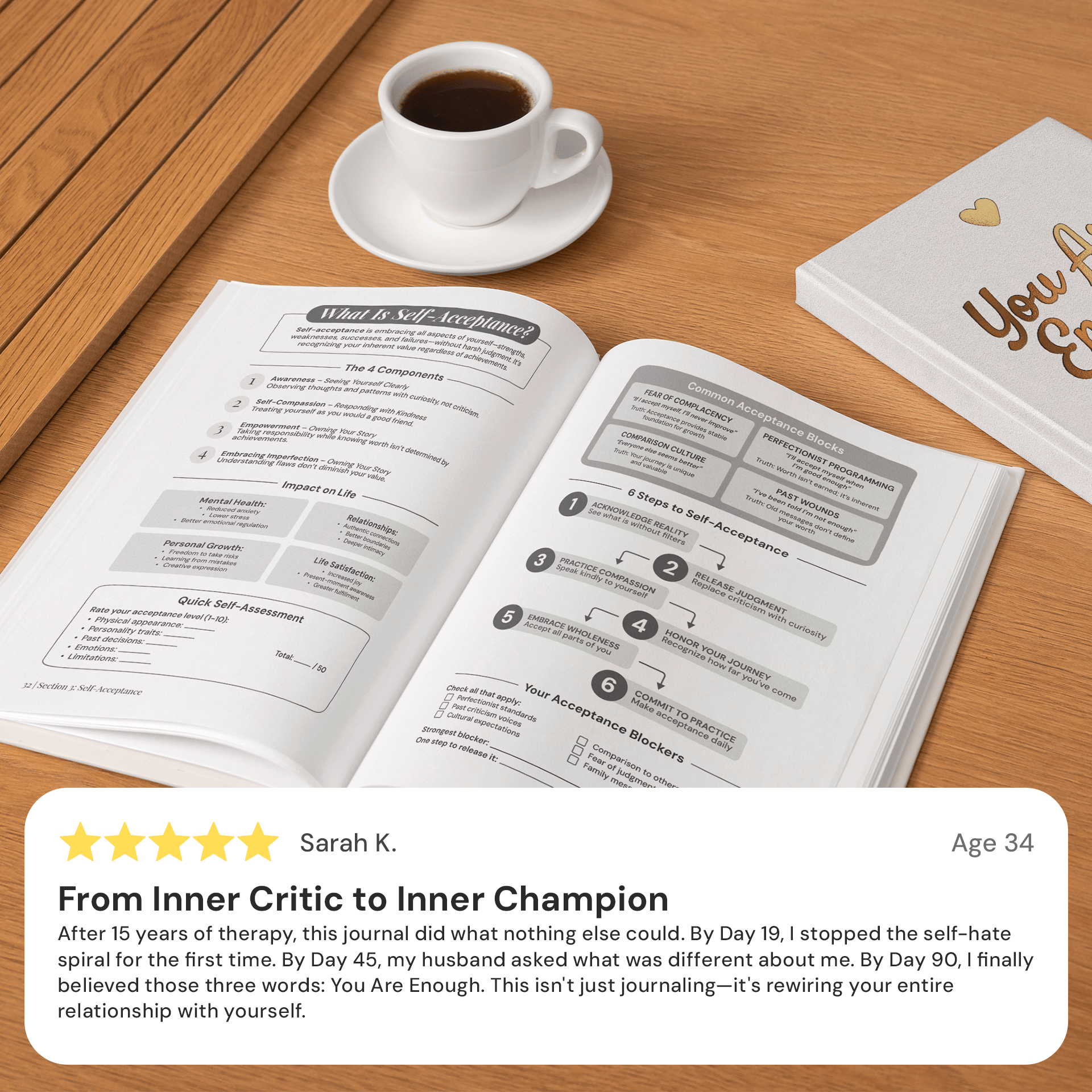 Our 90-Day Self-Love Journal has helped over 1,000 people interrupt the shame spiral, build boundaries that stick, and finally develop an inner voice that's kind instead of cruel.