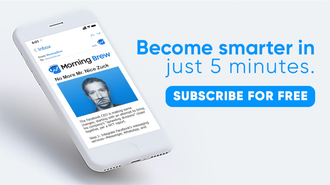 There's a reason over 4 million people start their day with Morning Brew - the daily email that delivers the latest news from Wall Street to Silicon Valley. Business news doesn't have to be boring...make your mornings more enjoyable, for free.