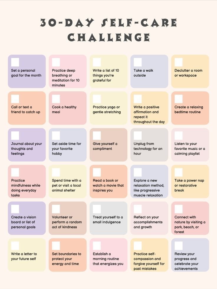 In the hustle and bustle of daily life, self-care often takes a backseat. However, prioritizing your well-being is essential for maintaining a healthy mind, body, and soul. This 30-day self-care challenge is designed to help you incorporate small, manageable habits into your routine, leading to a happier and more balanced life.