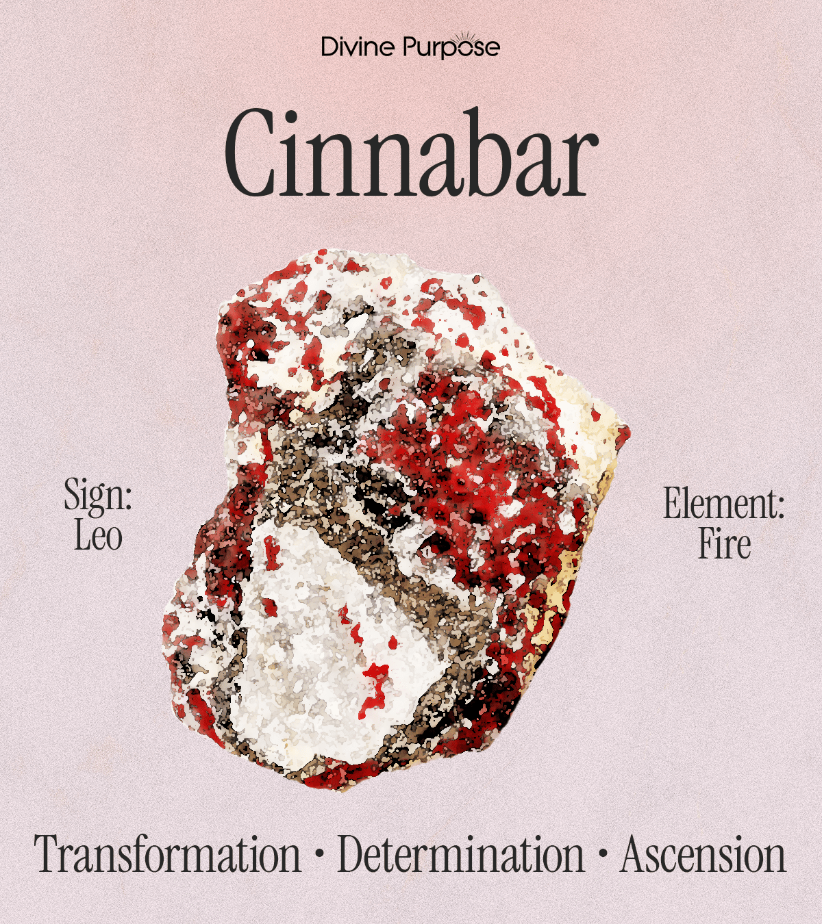 It’s said to call you back to yourself when you’ve outsourced your power — when you’ve diluted your intensity for comfort, or apologized for your desires. Cinnabar reminds you that transformation isn’t always serene; sometimes it’s molten. It activates the Root and Sacral Chakras, the meeting place of survival and creation — the part of you that builds, births, and rebuilds again.