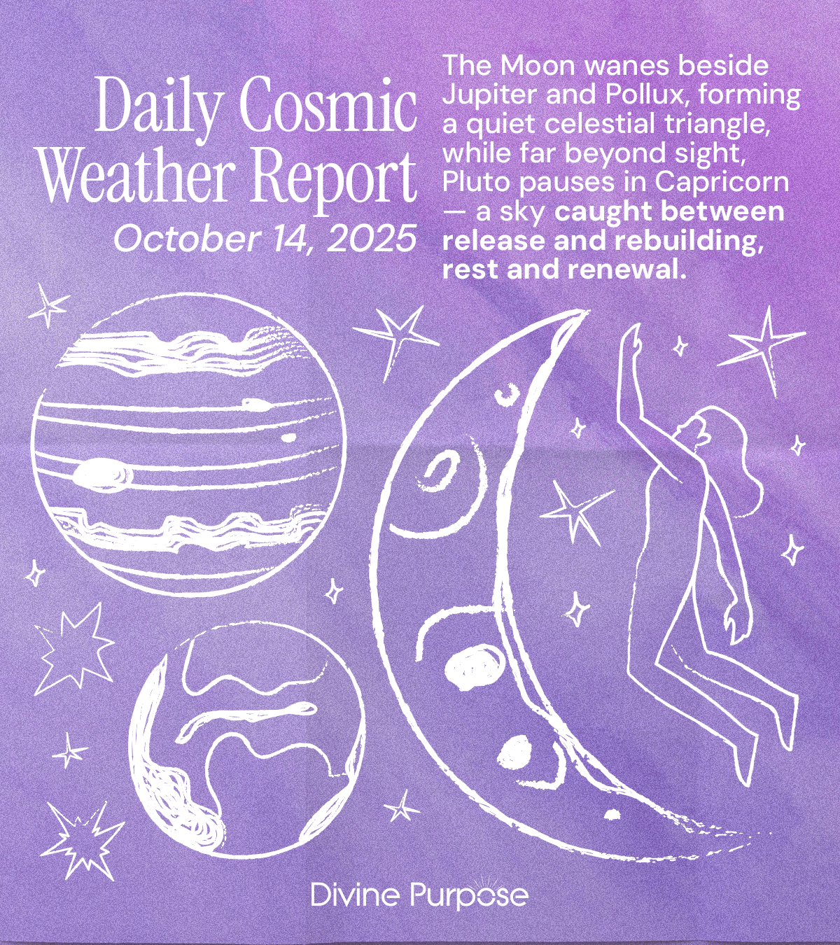 The Moon is thinning out — half light, half memory — reminding you to rest what’s been overworked. Before sunrise, it hangs in the southeast sky with Jupiter and Pollux, forming a soft triangle that almost looks intentional, like the universe lined up its punctuation marks just for you.
